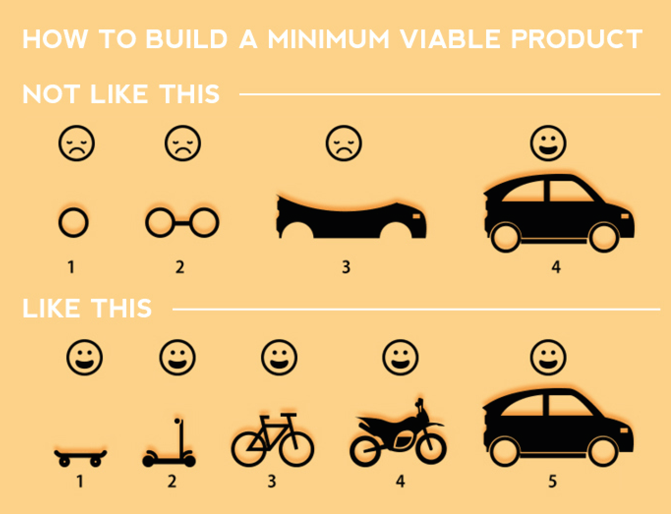 Another way to use this philosophy is by employing what’s called an MVP, a Minimum Viable Product. A minimum viable product (MVP) is a version of a product with just enough features to be usable by early customers who can then provide feedback for future product development.